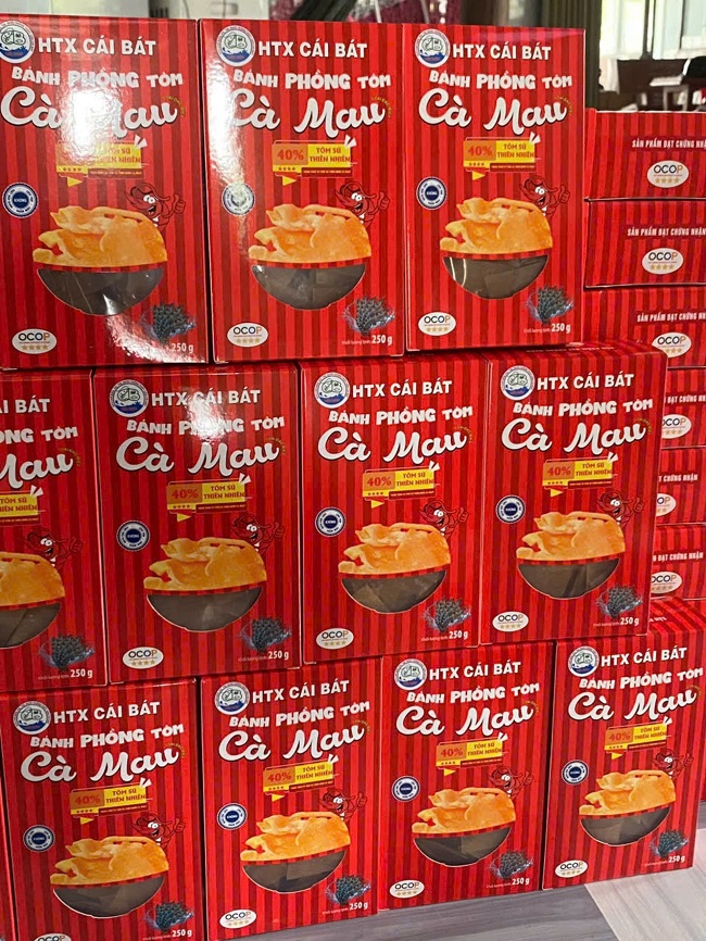 Sản phẩm Bánh phồng tôm của HTX Chế biến thương mại dịch vụ nuôi trồng thủy sản Cái Bát