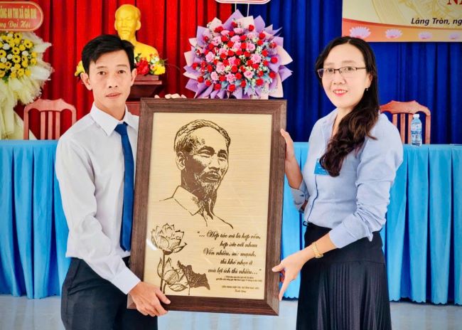 Thường trực Liên minh Hợp tác xã tỉnh tặng “Tranh Bác Hồ với Lời kêu gọi trích trong thư Bác Hồ gửi điền chủ, nông gia tham gia HTX ngày 11/4/1946” cho Quỹ tín dụng nhân dân trên địa bàn tỉnh Cà Mau