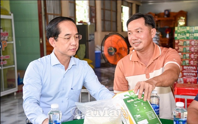 Đồng chí Hồ Thanh Thuỷ, Phó Bí thư Tỉnh uỷ, Chủ tịch Uỷ ban MTTQ Việt Nam tỉnh Cà Mau, nghe đại diện HTX giới thiệu sản phẩm OCOP của Hợp tác xã Nông nghiệp tổng hợp Ba Đình.