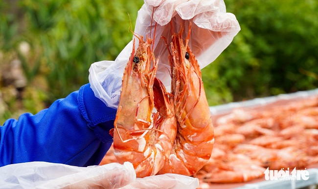Tôm sú 15 con/kg khi đem làm khô sẽ có được độ dai ngọt và thơm đặc trưng – Ảnh: THANH HUYỀN