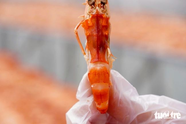Tôm chín được đưa vào nhà kính để phơi khoảng 3 ngày. Nếu phơi ngoài trời, thời gian kéo dài đến 4 ngày. Trong suốt quá trình này, tôm phải được theo dõi sát sao để đảm bảo độ khô đạt chuẩn nhưng vẫn giữ được độ dẻo. Sau hơn 3 ngày phơi, nhân công tiếp tục kiểm tra chất lượng từng mẻ tôm và độ ẩm trước khi hoàn thiện.
