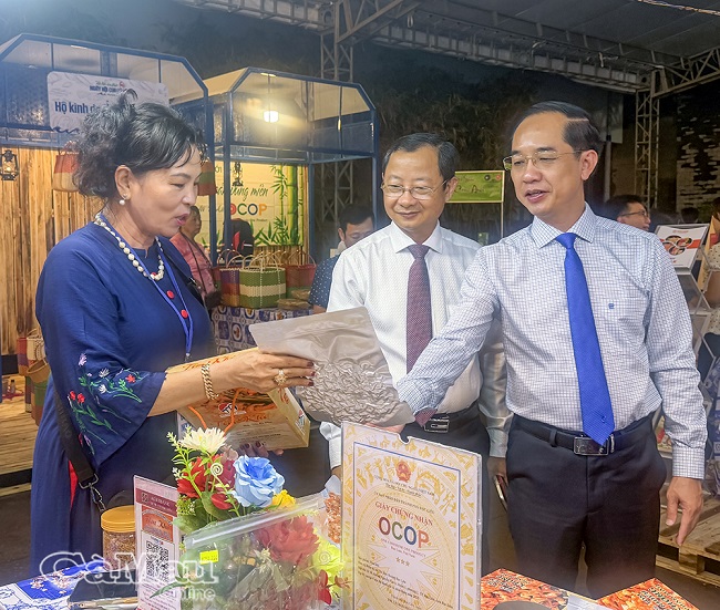 Phó Bí thư Tỉnh uỷ Hồ Thanh Thuỷ thăm và động viên các doanh nghiệp tại không gian trưng bày, triển lãm thương mại trong khuôn khổ chuỗi sự kiện Ngày hội Cua Cà Mau lần thứ II năm 2025.