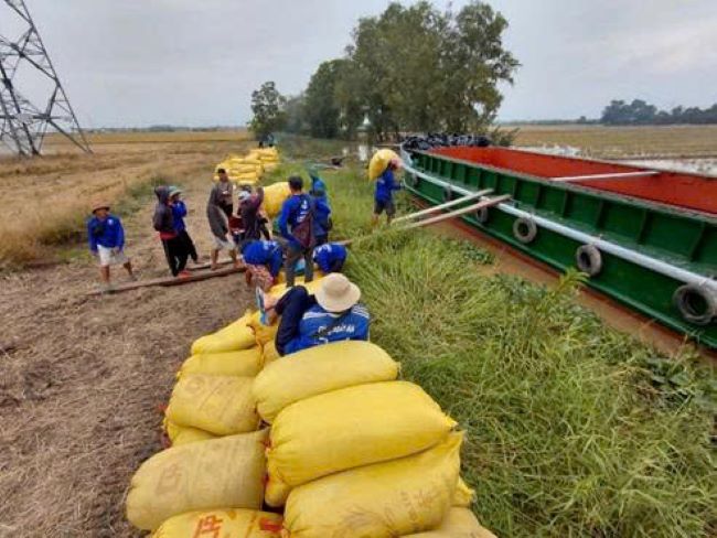Quang cảnh thu mua lúa bà con của HTX Nông nghiệp Vĩnh Cường