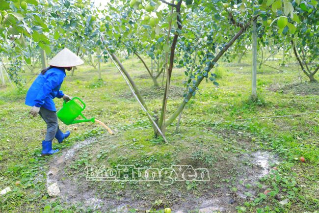 Sau mỗi lần thu hoạch, HTX DVNN Trọng Quan sẽ tưới lân, kali bổ sung dinh dưỡng cho cây nuôi quả.