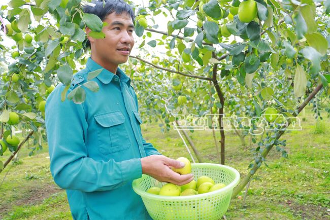 Do chăm sóc đúng quy trình, vườn táo sinh trưởng tốt, sai quả, trọng lượng trung bình đạt 7 - 10 quả/kg, cá biệt có quả chỉ 5 quả/kg. Táo lê Đài Loan có vị ngọt đậm, mọng nước, được người tiêu dùng ưa chuộng, giá bán dao động 45.000 - 55.000 đồng/kg. Thời gian thu hoạch kéo dài từ tháng 12 âm lịch đến tháng 2 năm sau. Vụ táo năm nay được mùa, được giá, dự kiến lợi nhuận đạt khoảng 200 triệu đồng/ha/năm. Mô hình còn tạo việc làm thời vụ cho 4 lao động địa phương với thu nhập 200.000 đồng/người/ngày.