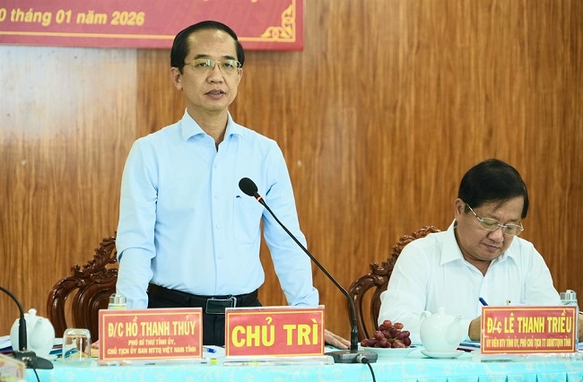 Phát biểu chỉ đạo tại hội nghị, đồng chí Hồ Thanh Thủy, Phó Bí thư Tỉnh ủy, Chủ tịch Ủy ban MTTQ Việt Nam tỉnh ghi nhận và đánh giá cao kết quả hoạt động của MTTQ và các tổ chức thành viên trong thời gian qua. Đồng chí đề nghị thời gian tới, MTTQ các cấp tiếp tục đẩy mạnh tuyên truyền về Đại hội đại biểu toàn quốc Đảng Cộng sản Việt Nam lần thứ XIV; tuyên truyền kỷ niệm 96 năm Ngày thành lập Đảng Cộng sản Việt Nam (3/2/1930 – 3/2/2026).