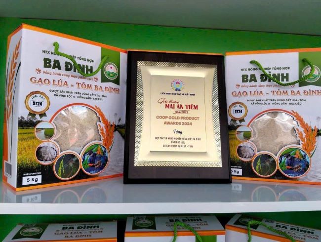 Năm 2024, sản phẩm gạo lúa – tôm Ba Đình được công nhận đạt chuẩn OCOP và vinh dự đạt Giải thưởng Mai An Tiêm – sản phẩm hợp tác xã tiêu biểu toàn quốc. Đây là dấu mốc quan trọng, khẳng định hướng đi đúng đắn của HTX trong việc nâng cao giá trị nông sản gắn với chuỗi liên kết bền vững.