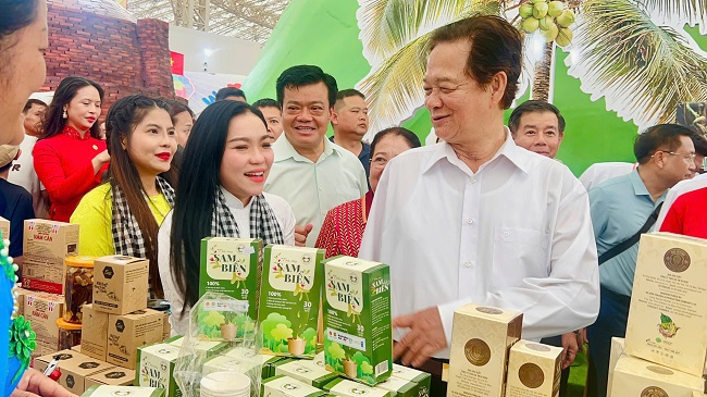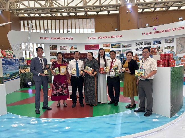 (Người thứ hai từ bên trái qua) cùng các Chủ thể tại Gian trưng bày tỉnh Cà Mau