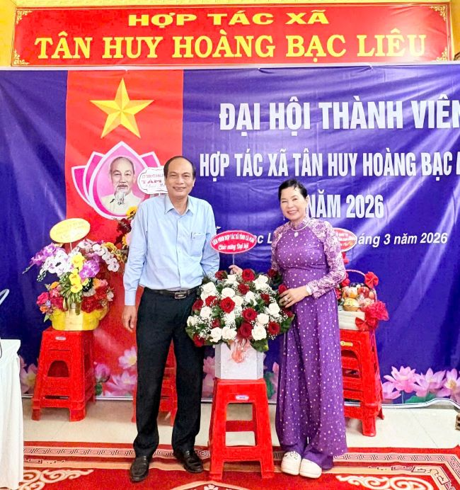 Tại Đại hội, đại diện Liên minh HTX tỉnh cùng đại diện các cơ quan, doanh nghiệp đóng trên địa bàn trong và ngoài tỉnh đã tặng hoa và quà chúc mừng cho đại hội, thể hiện sự quan tâm, ghi nhận và động viên tinh thần đối với tập thể HTX Tân Huy Hoàng Bạc Liêu. Những bó hoa tươi thắm là lời chúc mừng cho thành công của Đại hội, đồng thời gửi gắm niềm tin vào sự phát triển vững mạnh của HTX trong thời gian tới.
