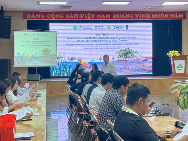 Hội thảo do Trường Chính sách công và Phát triển nông thôn (PRD), Đại học Flinders, Trường Đại học Nông Lâm TP. Hồ Chí Minh phối hợp cùng Chương trình Phát triển Liên Hợp Quốc (UNDP) tổ chức, nhằm trao đổi, đề xuất các giải pháp thúc đẩy phát triển kinh tế xanh gắn với nâng cao khả năng thích ứng và chống chịu với biến đổi khí hậu tại khu vực ĐBSCL.
