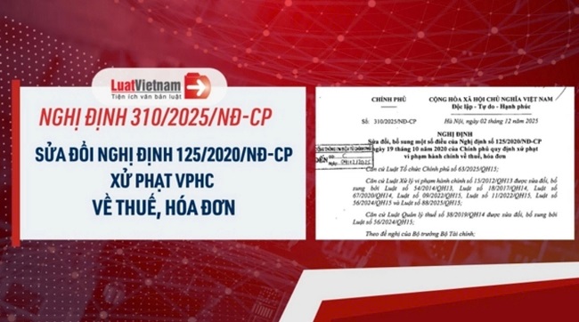 Nghị định số 310/2025/NĐ-CP sửa đổi, bổ sung một số điều của Nghị định số 125/2020/NĐ-CP quy định xử phạt vi phạm hành chính về thuế, hóa đơn