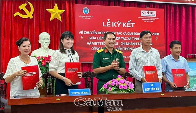 Các HTX, doanh nghiệp tham gia ký kết về chuyển đổi số với Viettel Cà Mau. (Ảnh: T.T)