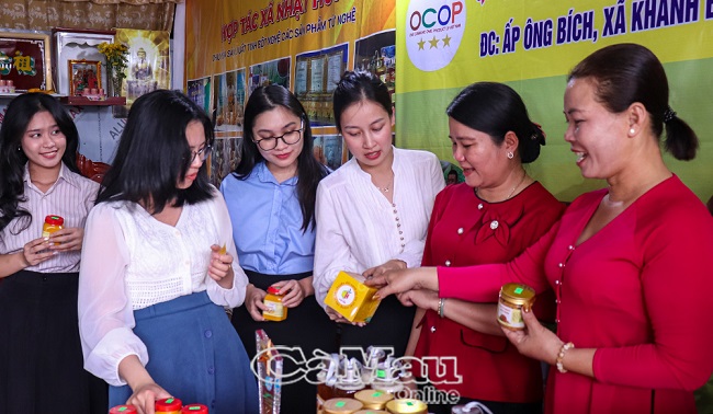 Đoàn đến tham quan tại Hợp tác xã (HTX) Nhật Huy ở ấp Ông Bích. Đây là HTX do hội viên phụ nữ quản lý, chuyên sản xuất các sản phẩm từ củ nghệ.