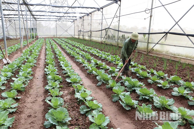 Sản xuất rau tại HTXDVNN Cát Lại, xã Bình Lục. Ảnh: Mạnh Hùng