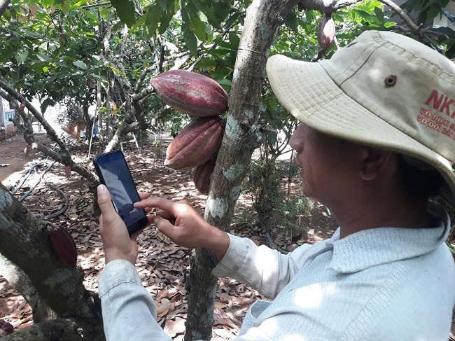 Nông dân Nguyễn Văn Thành, HTX Thương mại - dịch vụ nông nghiệp Xà Bang (xã Châu Đức) áp dụng chuyển đổi số, nhập nhật ký trồng trọt trên điện thoại. Ảnh: Song Anh