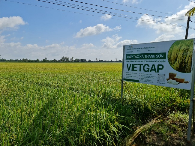 Để nâng cao chất lượng nông sản và đáp ứng yêu cầu thị trường, HTX Thanh Sơn đã tích cực thúc đẩy nông dân tham gia sản xuất lúa theo các tiêu chuẩn an toàn, trong đó có tiêu chuẩn VIETGAP và các quy trình quản lý kỹ thuật tiên tiến. Việc này góp phần giảm chi phí đầu vào, nâng cao chất lượng sản phẩm và tăng khả năng truy xuất nguồn gốc, từ đó tạo điều kiện thuận lợi hơn trong liên kết với doanh nghiệp và tổ chức thu mua.